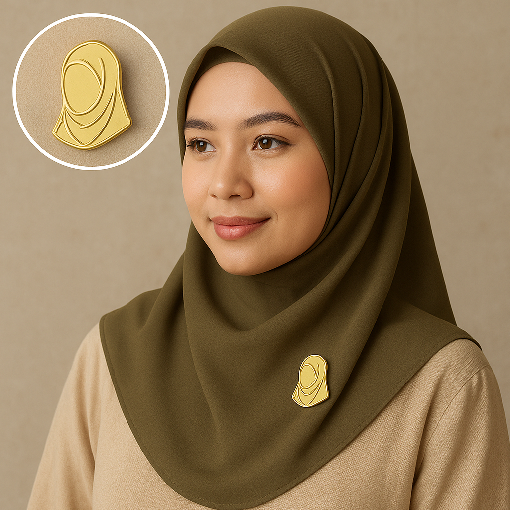 Cocok untuk merchandise promosi brand atau produk yang menyasar anak muda. - Pin Hijab Aesthetic Warna Gold